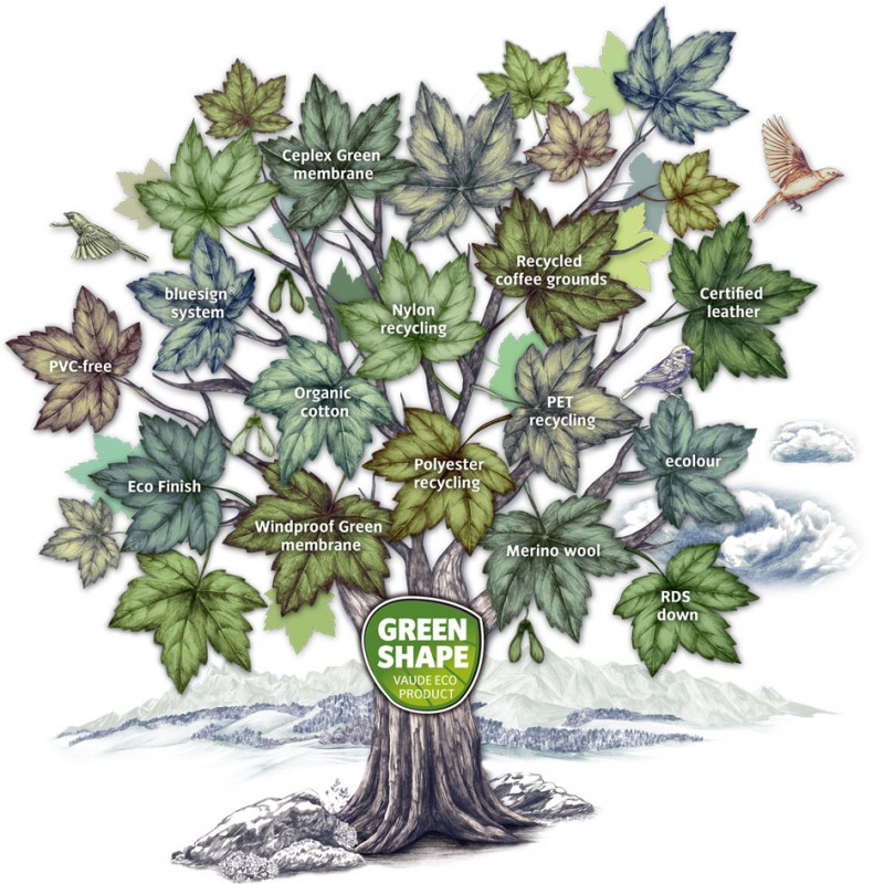 Európskou jednotkou medzi vyššie spomenutými firmami je v oblasti outdoorového vybavenia rozhodne Vaude. Na celosvetovej úrovni tomuto pomyselnému trónu stále vládne Patagonia, avšak nedá sa prehliadnuť, že aj Vaude má veľmi slušne našliapnuté. Ak vezmeme do úvahy, že v porovnaní práve s Patagoniou ide o pomerne malú rodinnú firmu, sú ich snahy o to úctyhodnejšie. Tip: Skvelý prístup značky Patagonia si môžete pripomenúť v našom staršom článku. Pretože si predstavitelia firmy Vaude plne uvedomujú svoj diel zodpovednosti za našu spoločnú budúcnosť, je koncept Green Shape ich poznávacím znamením už niekoľko rokov. Čo to znamená v praxi? Minimálne 90 % použitých materiálov je možné označiť za ekologické a šetrné k životnému prostrediu. Dôraz je kladený ako na zdroj tohto materiálu, tak aj na jeho spracovanie a následnú možnosť recyklácie či rozložiteľnosť. S tým úzko súvisí aj spolupráca so systémom BlueSign, ktorý ekologicky šetrný spôsob výroby kontroluje a garantuje.
